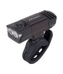 přední hliníkové světlo, 2x super svítivá 0,5 W dioda (50LM), 3 funkce : svícení 50% - 6 hod., svícení 100% -3hod., blikání: 6hod., Lithium baterie 3,7V 300mAh, doba nabíjení 3 hod., ochrana proti přebití a vybití, indikátor nabíjení a slabé baterie, montáž bez nářadí, integrované USB