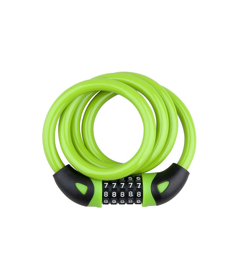 5 číselný stavitelný kód -nastavte kombinaci 0-0-0-0-0 potřebnou k otevření zámku -vysuňte třmen zámku -otočte kolečko ve směru šipky a nastavte na číselníku vlastní kombinaci -vraťte kolečko zpět do výchozí polohy -spojte zámek a zamkněte otočením čísel číselníku -zámek nyní otevřete již vlastní kombinaci čísel